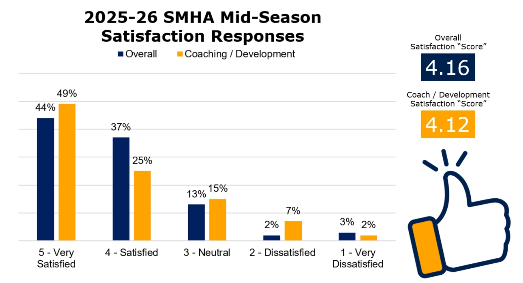 As you may remember, SMHA ran a Mid-Season Review from December 10-23 to gather feedback on the season so far. We received 165 responses - far exceeding last year’s response rate - and heard from families across all age divisions and teams. Thank you to everyone who took time to share their thoughts!